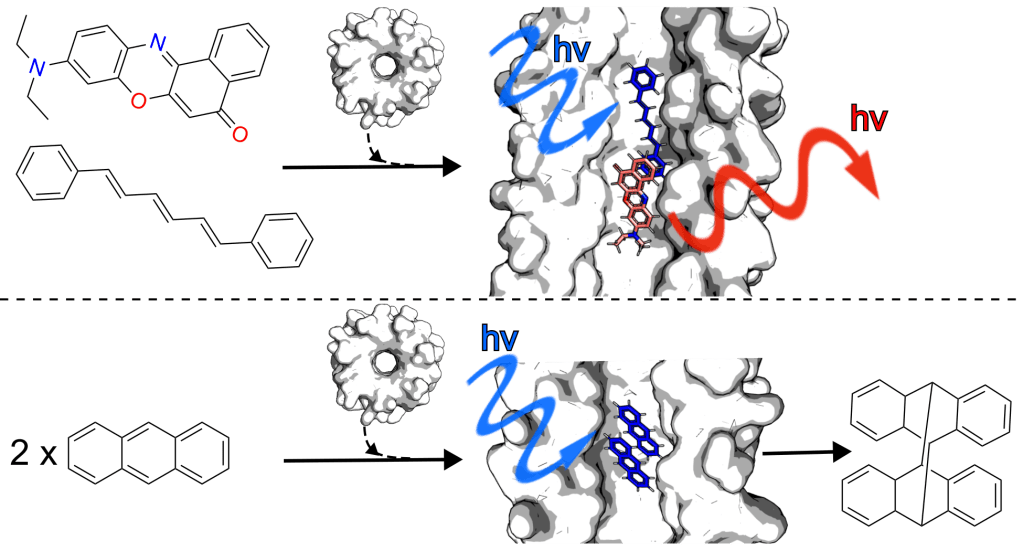 The paper showcases the potential of α-helical barrel (αHB) peptide assemblies as versatile molecular tools to act as “molecular flasks.” The αHBs can selectively bind small molecule fluorophores such as Diphenylhexatriene or Nile Red within the hydrophobic lumen in specific orientations in close proximity to facilitate very rapid and efficient FRET. Additionally, the same barrels bind two anthracene molecules and catalyse photodimerisation reactions, underscoring their potential in complex chemical reactions.